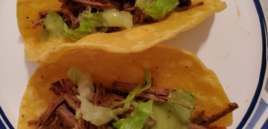 Barbacoa Recipe 🌶 shredded barbacoa beef on fried corn tortillas 🌮 chopped lettuce & guacamole salsa 🥑 use your favorite toppings 🍅🍈🥬 other uses for delicious barbacoa like Burritos, nachos using beef, pork or chicken, quesadilla via a free spirited girl 😉 yumm 🌯⤵️
