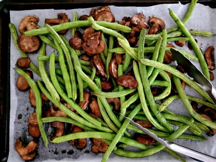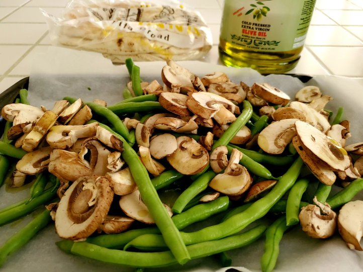 We had fresh pita bread, fresh salad; green beans & mushrooms just because I had to cook them while fresh 😉 and above chutneys