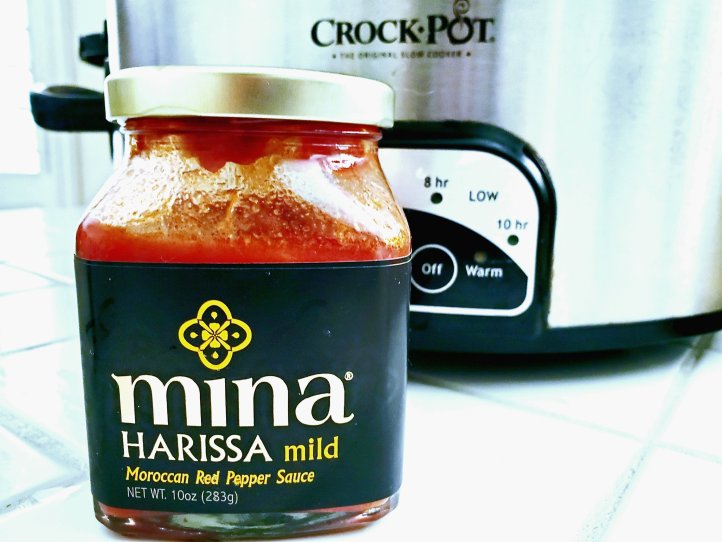 Place chicken in a slow cooker, pour the harissa over the chicken, and cover. Cook on HIGH for 2 hours or LOW 4 hours.
