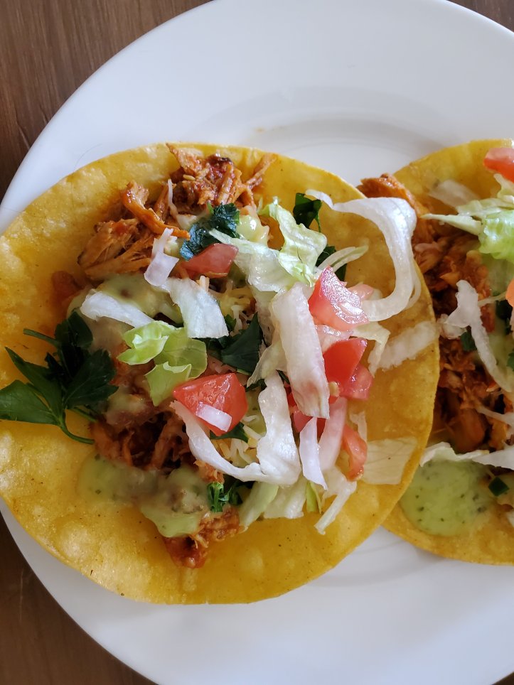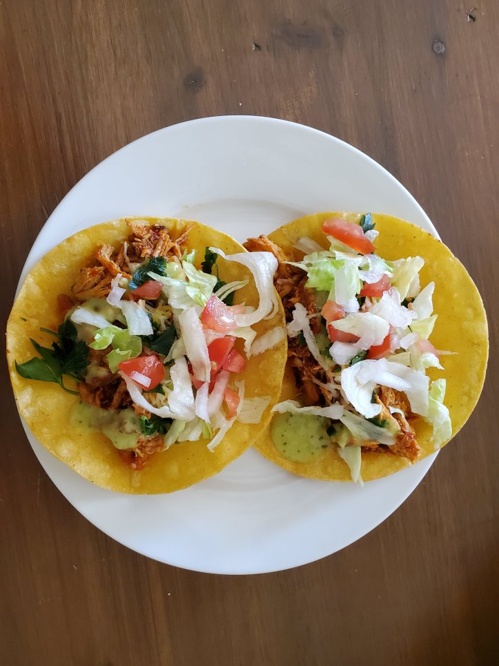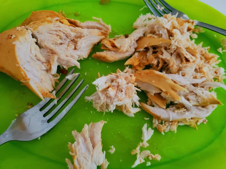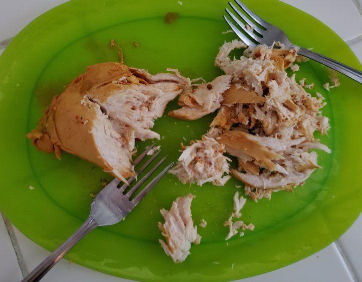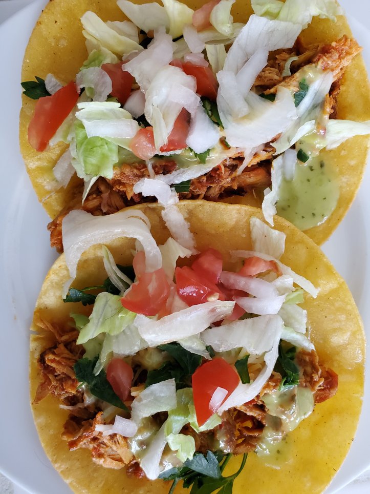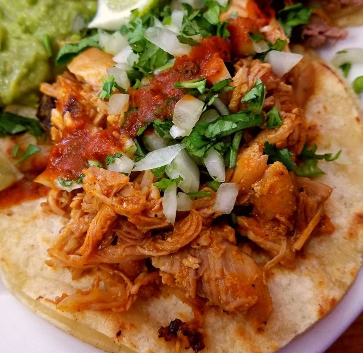 I used 2 chicken breasts & 2 thighs. I put all ingredients in slow cooker for 4 hours, shredded, ➡️ then (optional), I finished chicken off in hot cast iron skillet. This will also reduce and concentrate those flavors, which is always a good thing.