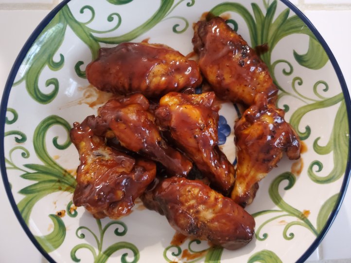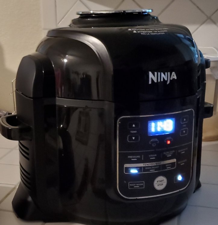 In The Ninja® Foodi™ 8-qt. Pressure Cooker Air Fryer…we put 1 cup of water in bottom of pressure cooker, inserted basket, pressure cooked wings 5 minutes, then put them in a bowl with a little oil & seasonings (salt, pepper, garlic powder, onion powder, & McCormick Brown Sugar Bourbon seasoning 😉), tossed wings in bowl, put back in cooker, switched to air crisper lid, added more of our favorite seasoning (McCormick’s) and air fried for 12 minutes. Tossed in sauce 😁 😋 flipping good❗🥰