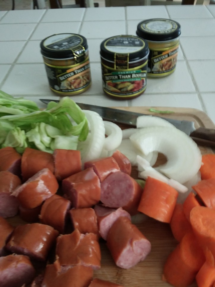 I’ve posted similar recipe already but there’s so many…with variations; meaning it’s really flexible…to your family’s preference or what’s at hand. I always use kielbasa. Also, I didn’t use potatoes & i did add carrots. I also use Better Than Bouillon (that varies with what I have also; ham base, chicken…VEGETABLES 😀 ) & a little sprinkle of brown sugar. ♡ The broth tastes SO good…I don’t need any mustard or vinegar, apple juice, etc.. Although that sounds good too (Bragg Organic Apple Cider Vinegar)…even some apple slices. For this time though, I kept it simple & quick prep. Sharing the following recipe from “Simplify Live Love” ~