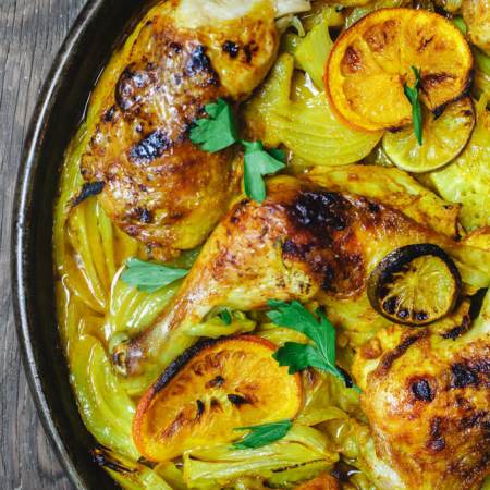 MEDITERRANEAN ROAST CHICKEN WITH TURMERIC AND FENNEL