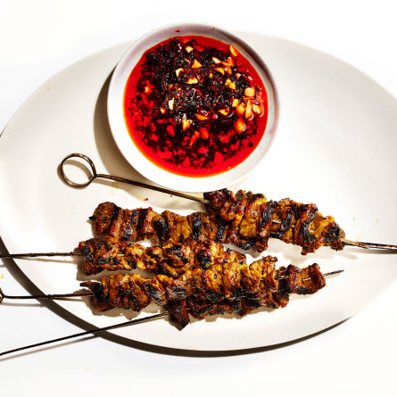 Coconut-Marinated Short Rib Kebabs with Peanut-Chile Oil